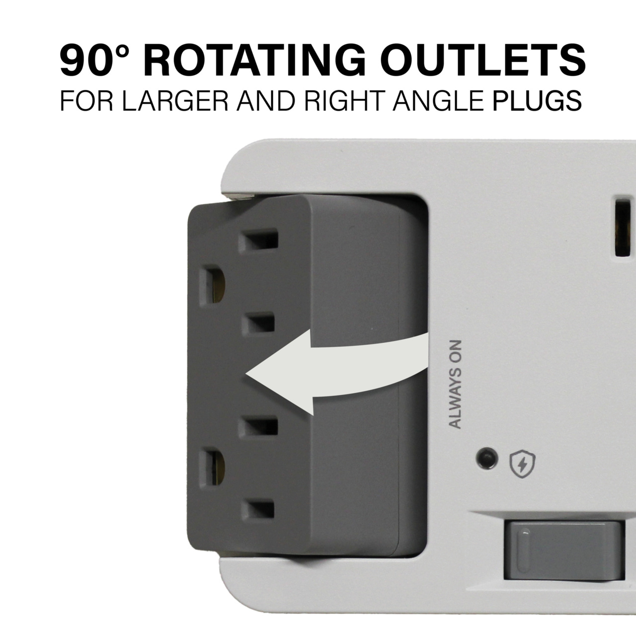 - Rotating Outlets for Ultimate Flexibility: Both ends of the surge protector feature innovative 90-degree rotating outlets, accommodating larger plugs without compromising access to neighboring outlets.