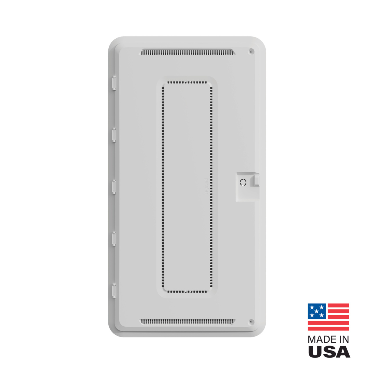 The hinged door and trim ring easily attach to the ENP2080-NA plastic enclosure (ENP2080-5NA Bulk Pack) and is reversible, allowing the door to swing from right or left, adding flexibility to the installation. Purchase during the project trim-out phase to complete installation. The hinged cover has extra venting along the center plane of the door to keep components cool and in lockable with provided screws or optional lock.