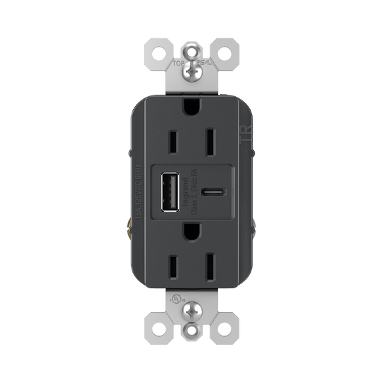 radiant® 15W USB Outlet, Type A/C, 15A, Tamper-Resistant, Graphite