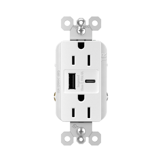 radiant® 15W USB Outlet, Type A/C, 15A, Tamper-Resistant, White