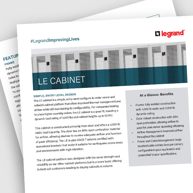 - Energy Efficiency - The LE was engineered to provide more efficient energy use in the data center. The solid top panel with brushed cable entry and thermal management package available for the LE platform creates the environment allowing the most energy savings.