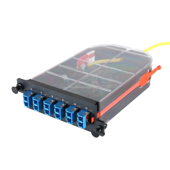 The 12 Fiber LM4 LC Tight Buffer Pigtail Cassette is designed to provide an efficient and organized solution for fiber optic terminations and splicing. With a focus on convenience, flexibility, and minimizing disruption to existing infrastructure, it offers a range of benefits that make it an ideal choice for many fiber optic installations. It can be used in data centers and telecom networks with existing fiber trunks or new multifiber cable. It comes pre-loaded with 12 LC pigtails to be mounted in a fiber patch panel or rack for easy access. This setup allows for reduced splicing errors and faster deployment.