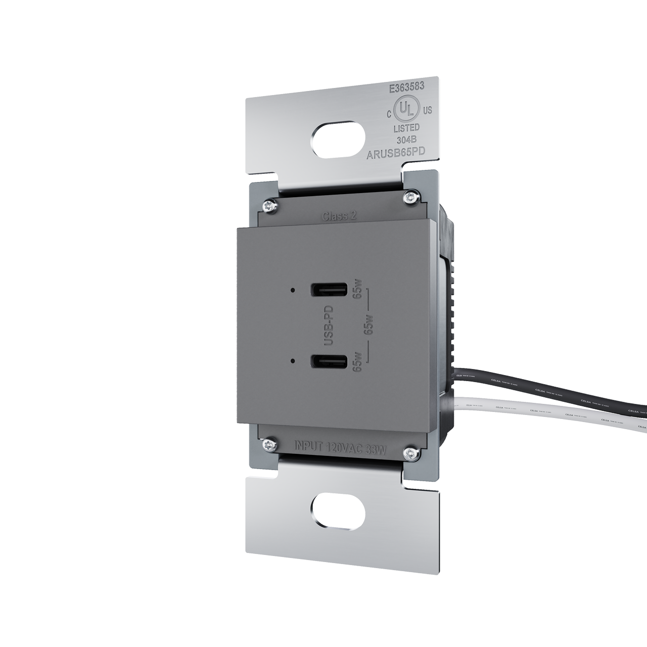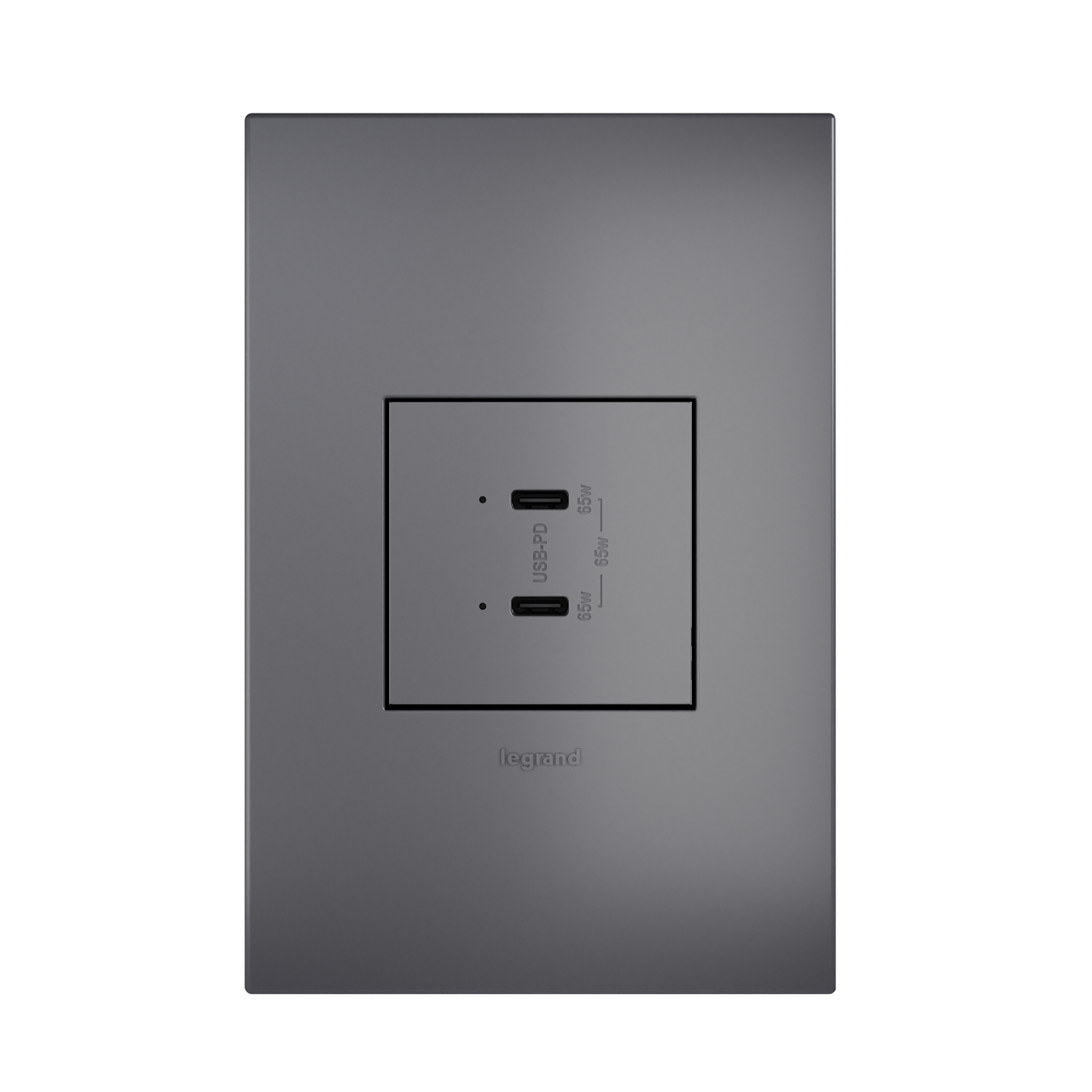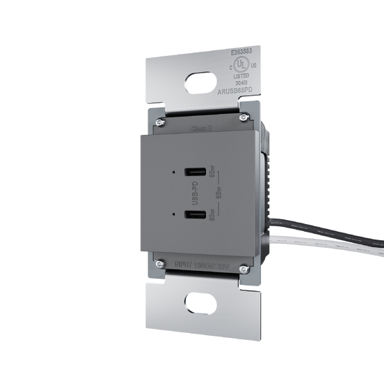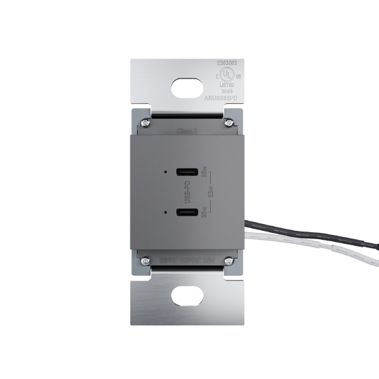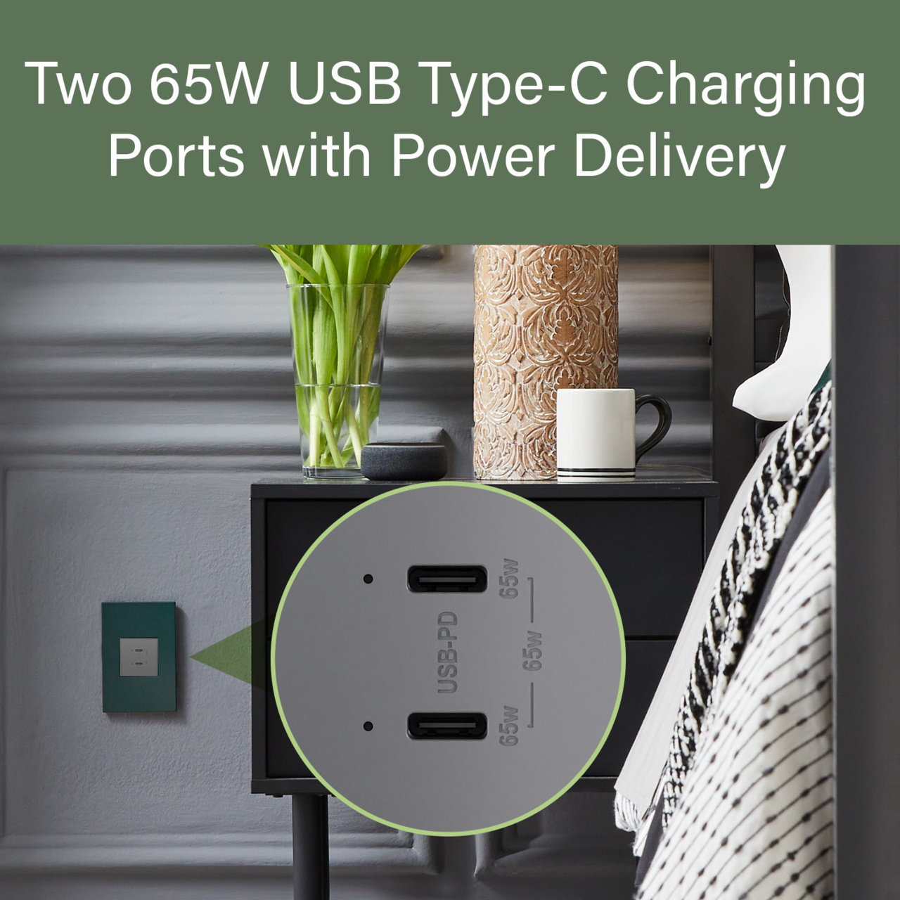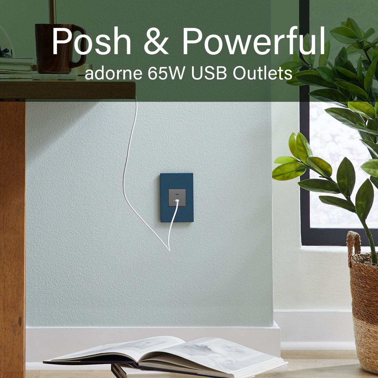 Featuring two USB Type-C ports with industry-leading 65W of power each, this device provides the fastest USB charging for phones, tablets and laptops. Advanced Power Delivery provides intelligent charging that negotiates optimal voltage and current between the outlet and the device being charged. Easily replaces a traditional outlet in as little as ten minutes. Enjoy USB charging functionality in every room of your home with the unique adorne contemporary aesthetic. Made exclusively for use with screwless wall plates from the adorne® Collection, sold separately.