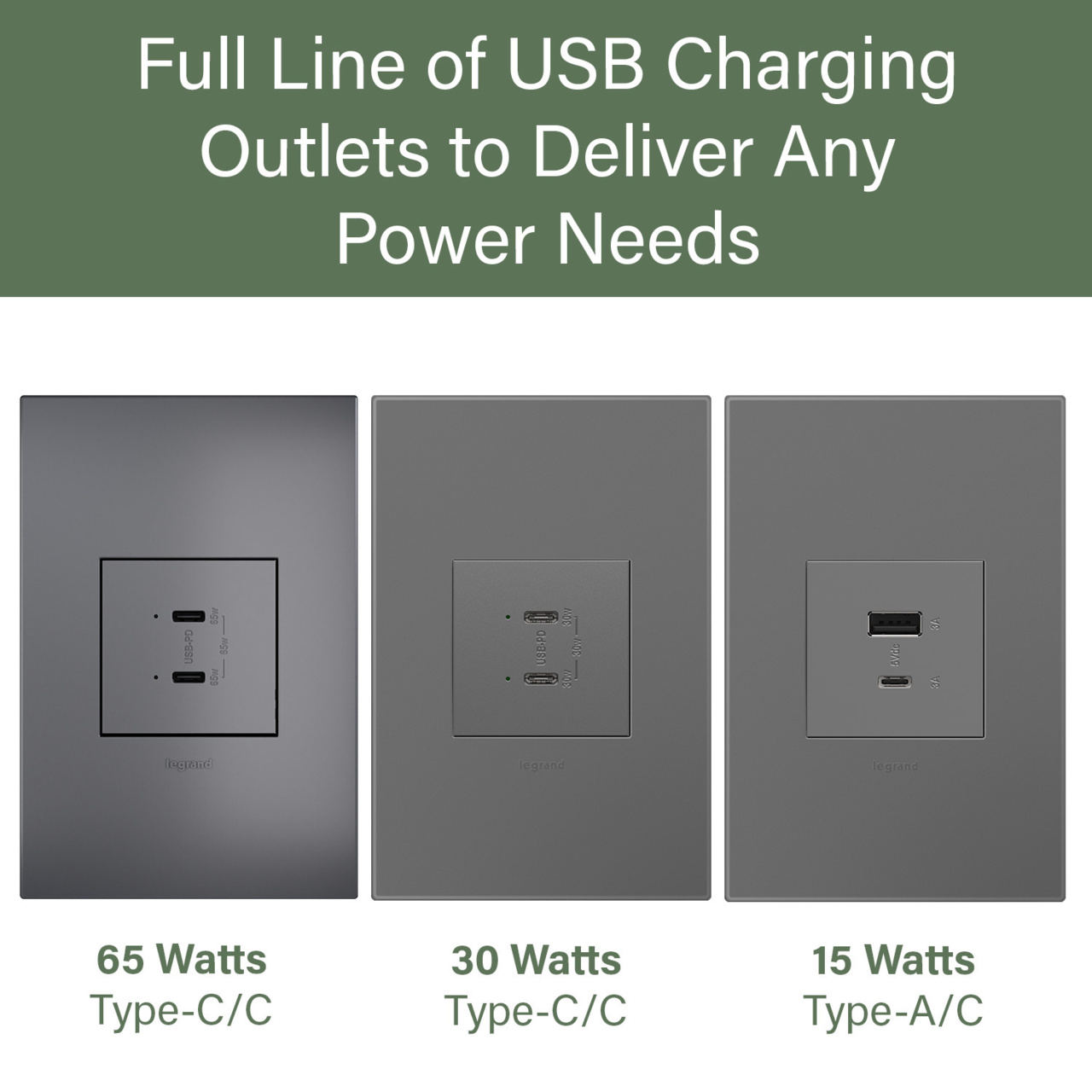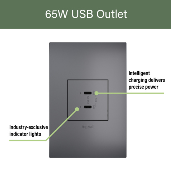 - Legrand USB Outlets are manufactured through high-quality design, sourcing and production, and backed by a Limited Lifetime Warranty.