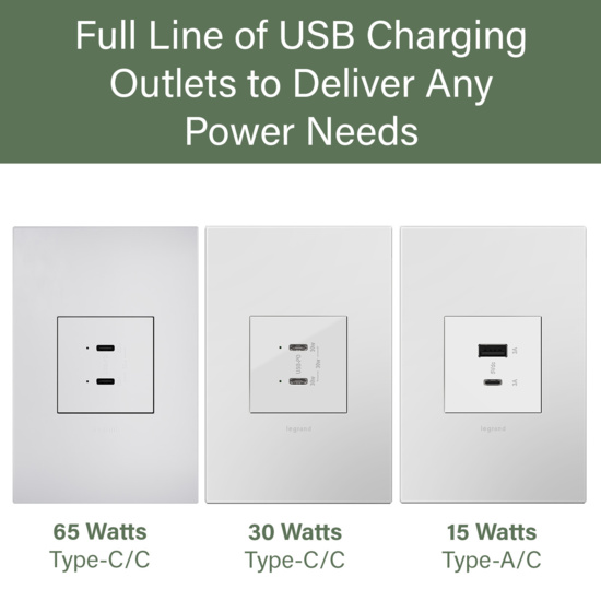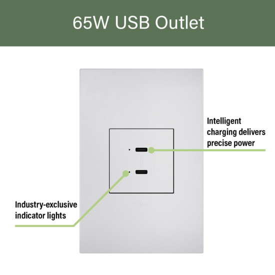 - Legrand USB Outlets are manufactured through high-quality design, sourcing and production, and backed by a Limited Lifetime Warranty.