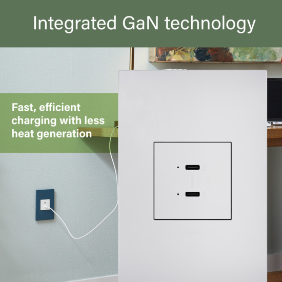 - Integrated GaN technology delivers faster, more efficient charging with less heat generation and 22% lower energy use per watt delivered, compared to previous technology.