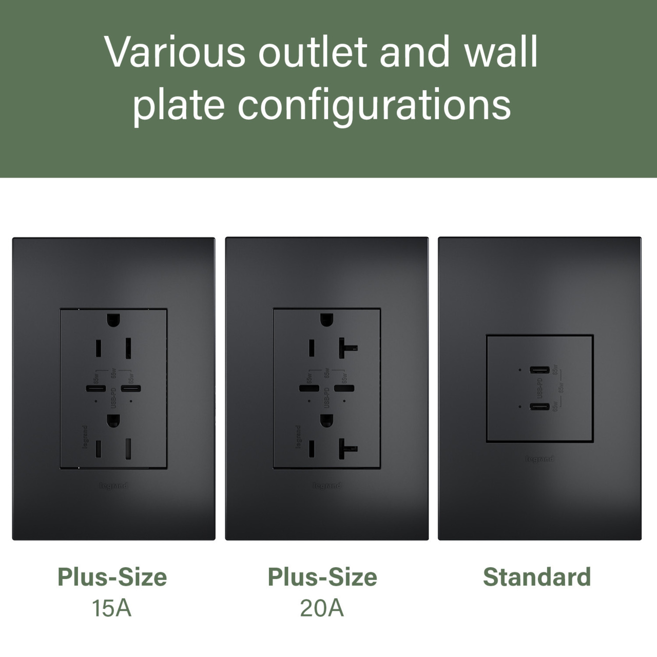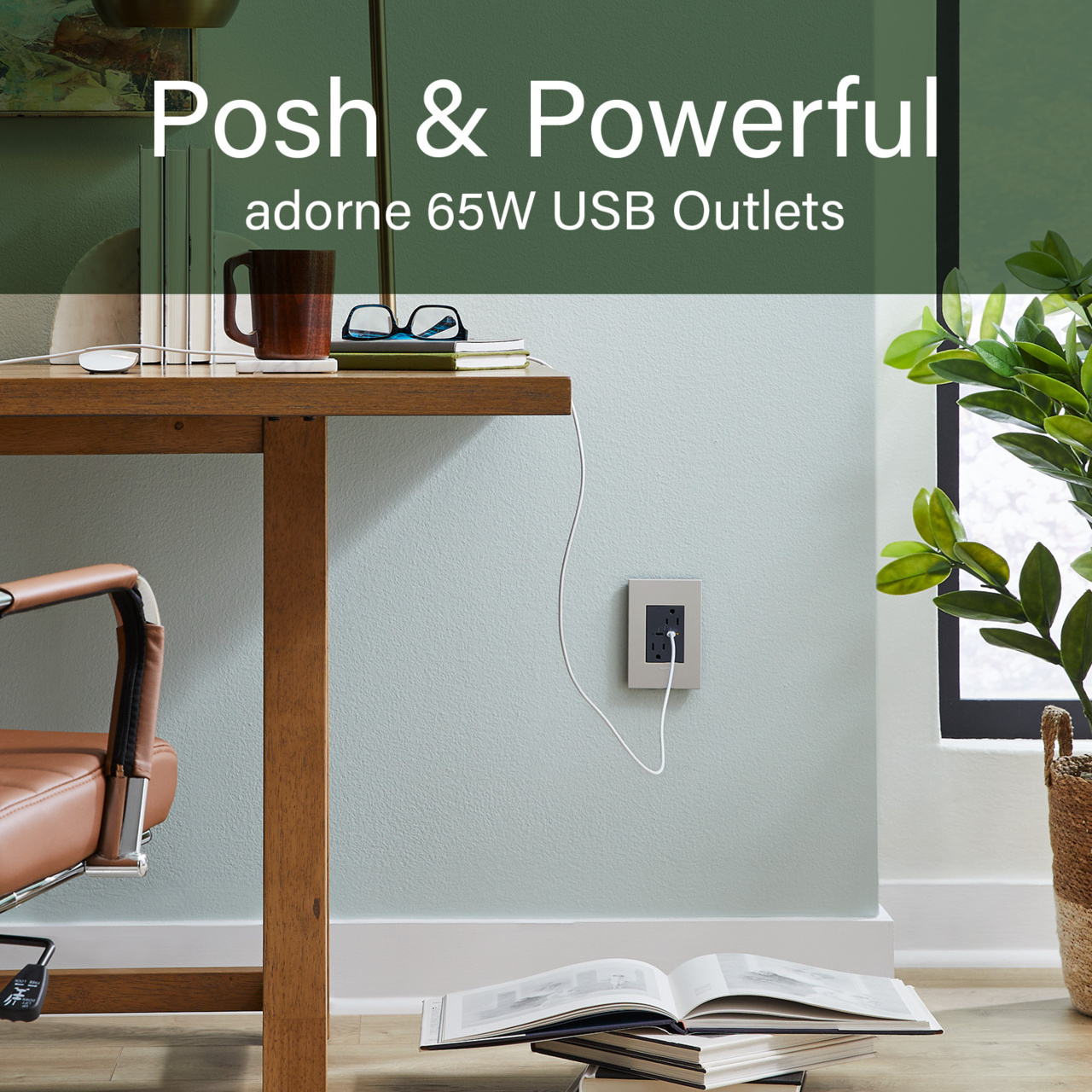 adorne® 65W USB Outlet, Plus-Size, Type C, 15A, Tamper-Resistant, Graphite