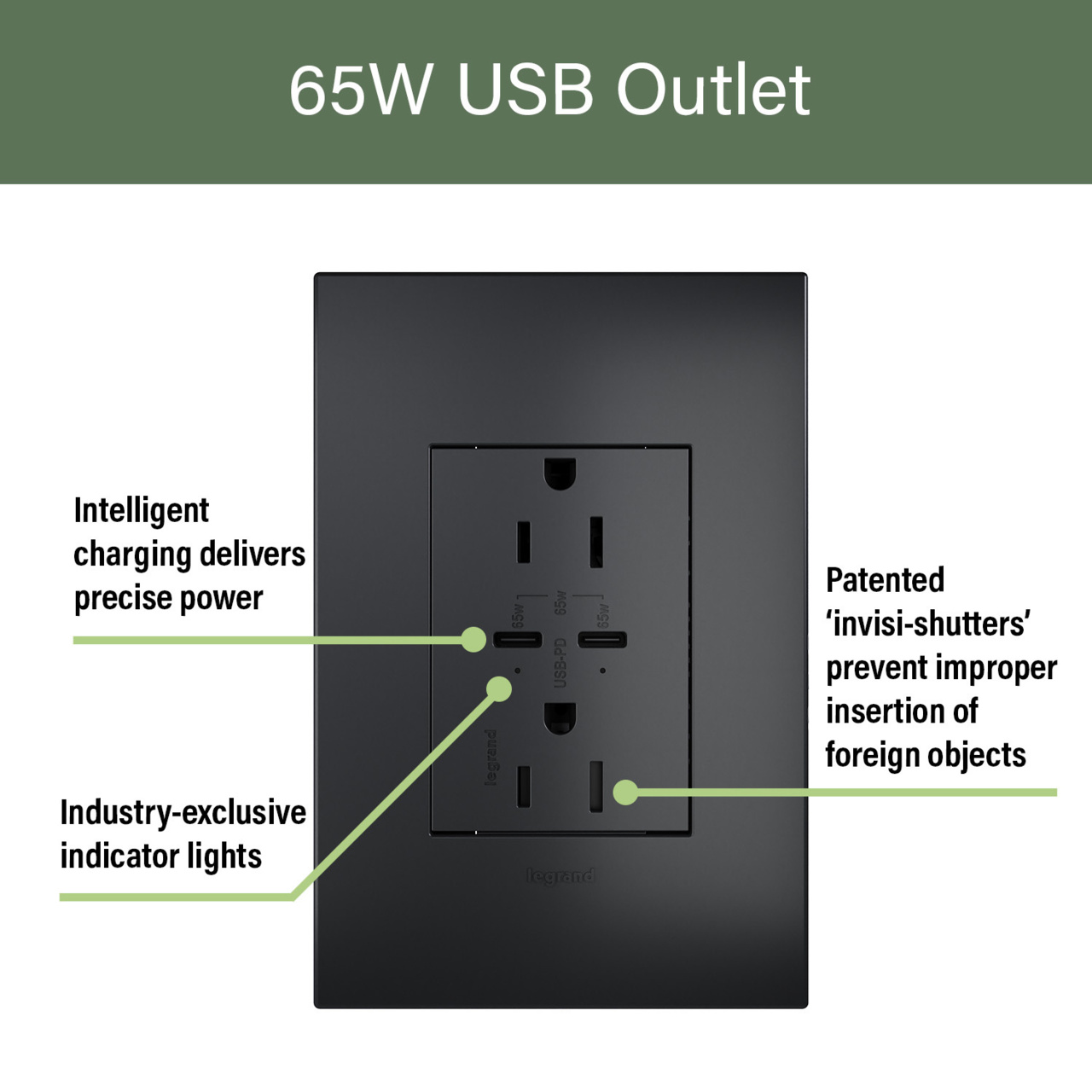 - Legrand USB Outlets are manufactured through high-quality design, sourcing and production, and backed by a Limited Lifetime Warranty.
