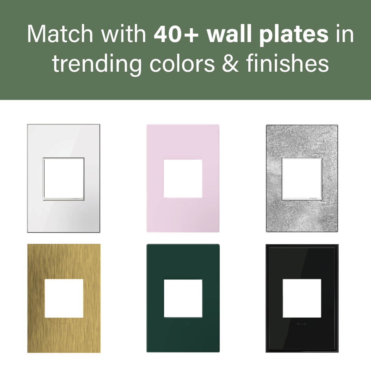 - For complete installation, device must be paired with an adorne® PLUS-SIZE screwless wall plate (not included). Available in a range of contemporary colors and stunning finishes.