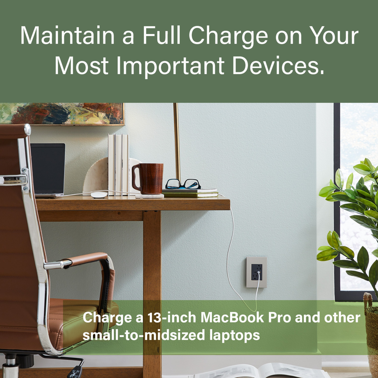 - Dual USB-C ports eliminate the need to upgrade devices for the foreseeable future and maximize available outlets as no bulky charging bricks are required.