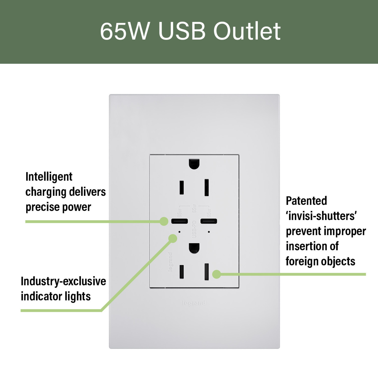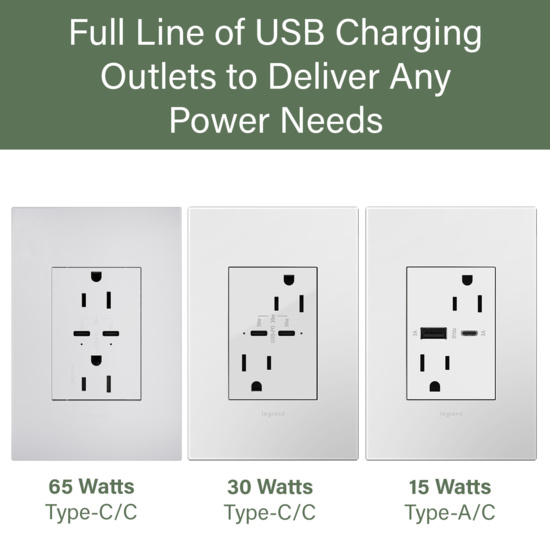 - Legrand USB Outlets are manufactured through high-quality design, sourcing and production, and backed by a Limited Lifetime Warranty.