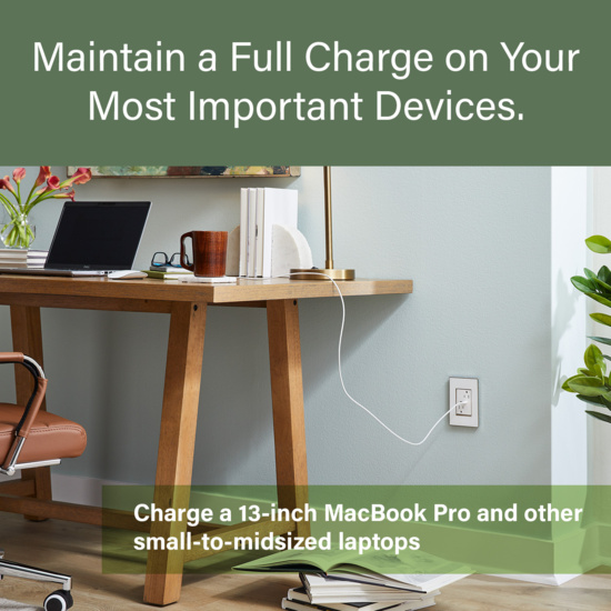 - Dual USB-C ports eliminate the need to upgrade devices for the foreseeable future and maximize available outlets as no bulky charging bricks are required.