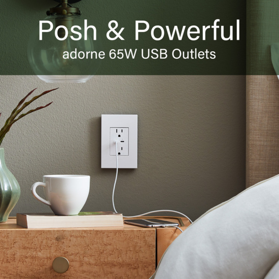 adorne® 65W USB Outlet, Plus-Size, Type C, 15A, Tamper-Resistant, White