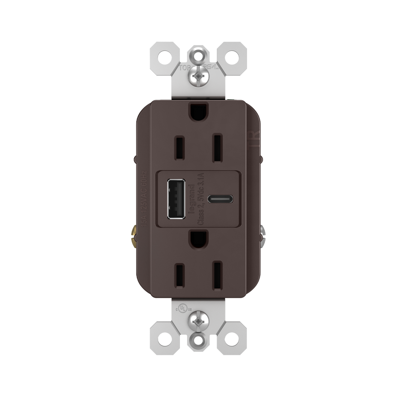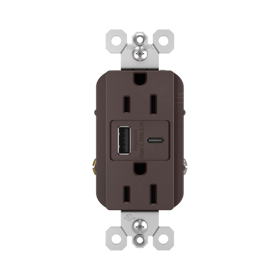 radiant® 3.1A USB Outlet, Type A/C, 15A, Tamper-Resistant, Dark Bronze