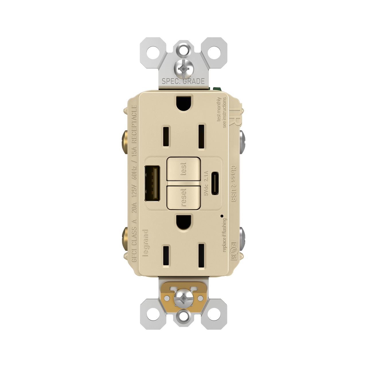 Excellent GFCI with USB-A and USB-C functionality. I'm amazed at how much Legrand fit into this outlet. This is installed beside my sink and easily accommodates all of my powering needs for old and new info.
