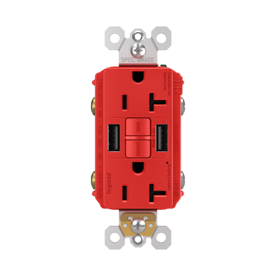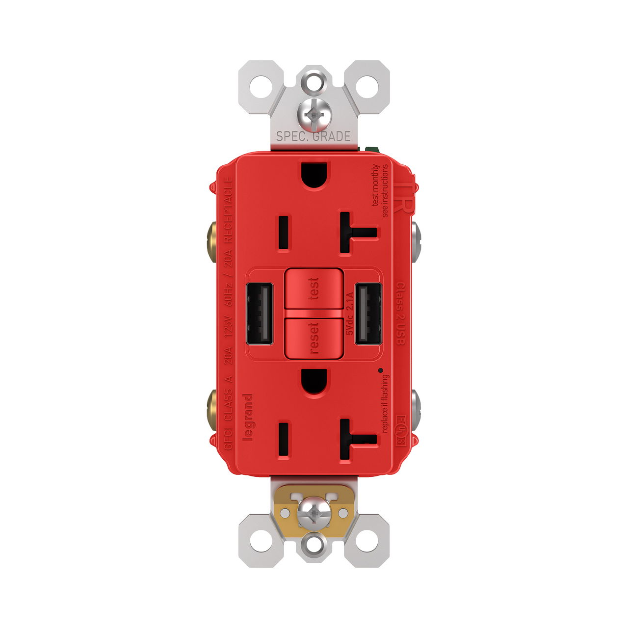 radiant® GFCI USB Outlet with SafeLock® Protection, Type A, 20A, Tamper-Resistant, Red