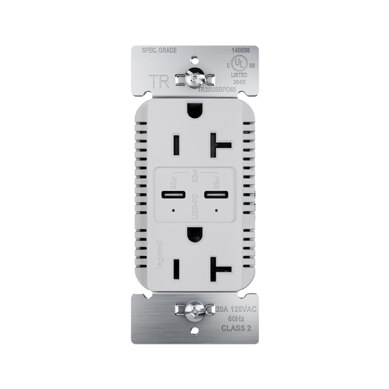 Elevate the power and convenience in your commercial spaces with Legrand's 65W USB Outlet, equipped with dual Type-C ports and Power Delivery for high-capacity charging. Designed for safe, efficient charging of essential devices – including smartphones, tablets, and small laptops like the 13-inch MacBook Pro and Chromebooks – this outlet provides an industry-leading power solution tailored for the future of commercial power needs.