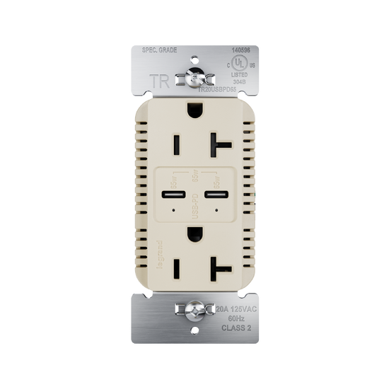 Elevate the power and convenience in your commercial spaces with Legrand's 65W USB Outlet, equipped with dual Type-C ports and Power Delivery for high-capacity charging. Designed for safe, efficient charging of essential devices – including smartphones, tablets, and small laptops like the 13-inch MacBook Pro and Chromebooks – this outlet provides an industry-leading power solution tailored for the future of commercial power needs.