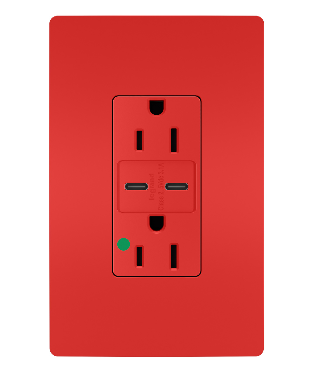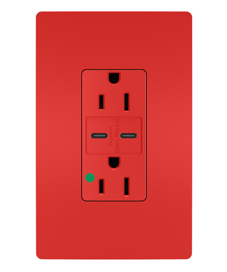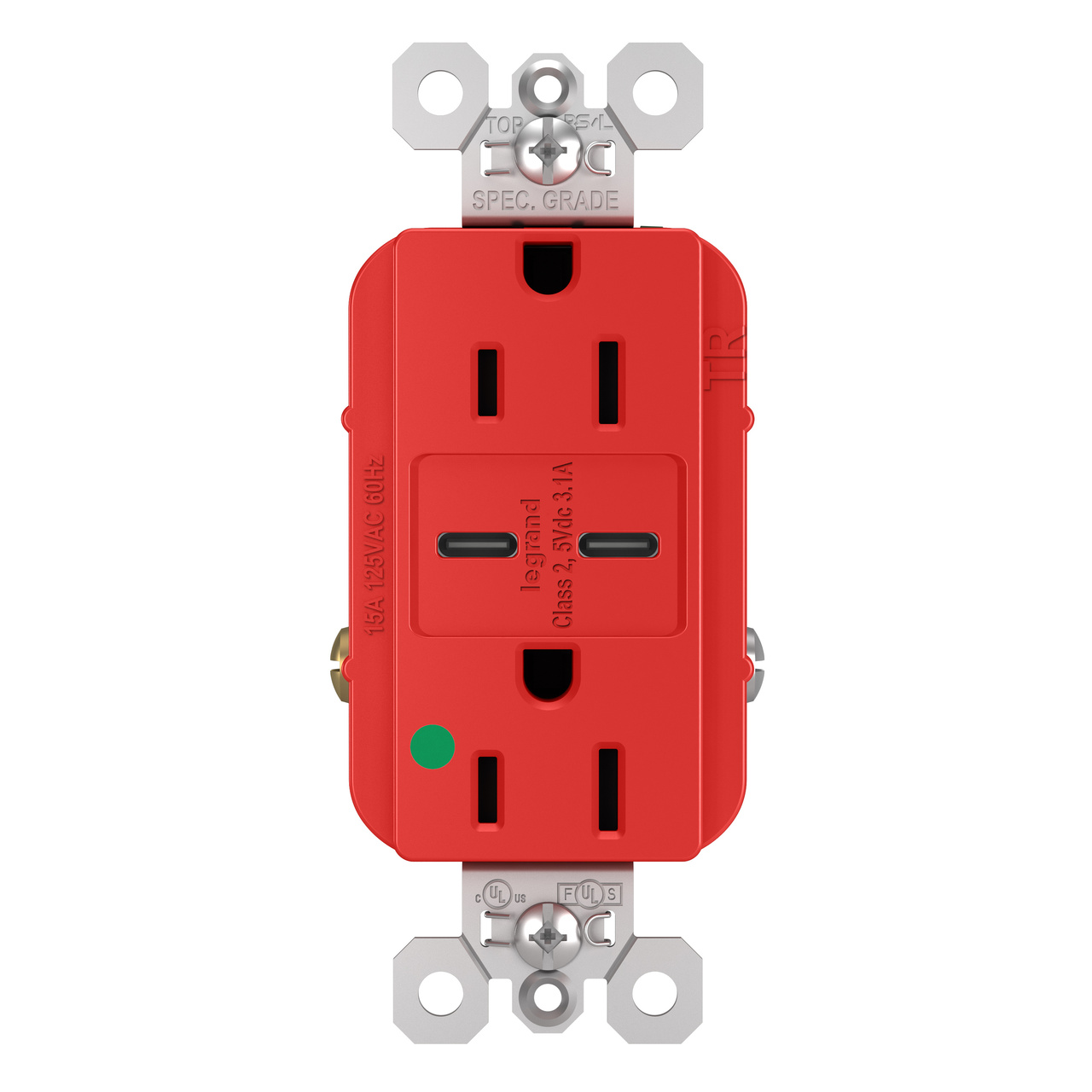 Discontinued - 15A 125V Duplex Hospital Grade Tamper Resistant Receptacle with Dual USB-C 3.1A, Red