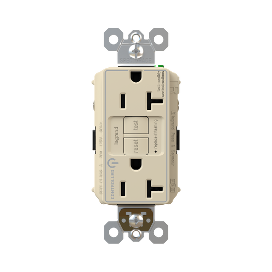 20A 125V Plug Load Dual Controlled Tamper-Resistant Self-Test GFCI Receptacles with SafeLock® Protection, Light Almond
