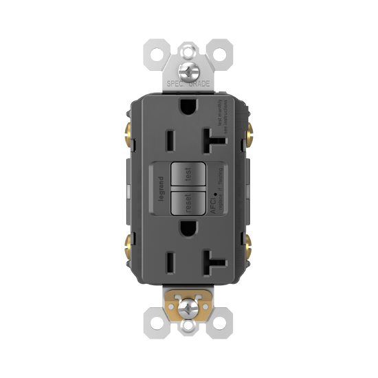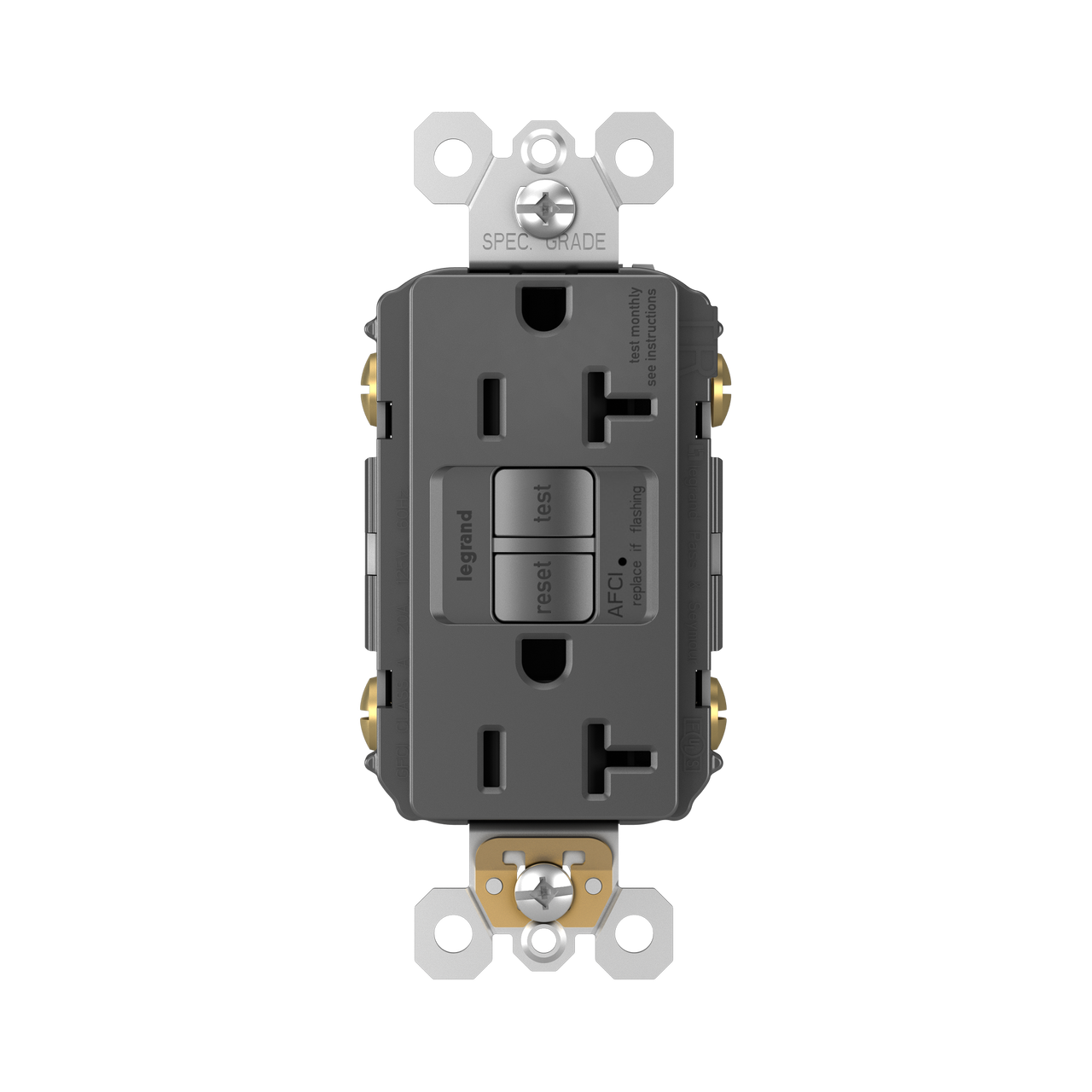 AFCI outlets from the radiant Registered Collection detect and cut power during arc-fault occurrences, reducing the risk of electrical fires. Meeting National Electrical Code as an alternative to AFCI breakers, these outlets make it easier to recognize and fix trips right where they happen. Maximize safety, in style, with AFCI protection featuring the sleek, clean lines of radiant. 20A outlets are ideal for use with larger appliances, as well as to meet regional requirements (Chicago, Canada). Made exclusively for use with screwless Wall Plates from the radiant Registered Collection, sold separately.