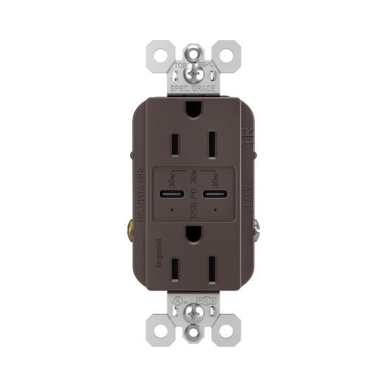 Made to deliver a 30 Watts of power and featuring two built-in Type-C USB connections, this solution adds advanced Power Delivery to the industry-leading amperage of our USB line. The result is a faster, future-proof option for convenient in-wall charging, specially designed to optimize performance for your Power Delivery-enabled devices. Easily replace a traditional outlet in as little as ten minutes to gain the modern functionality of intelligent charging for maximized speeds, complete with multi-layered overcurrent protection to keep the outlet and your devices safe from damage. Made exclusively for use with screwless Wall Plates from the radiant® Collection, sold separately.