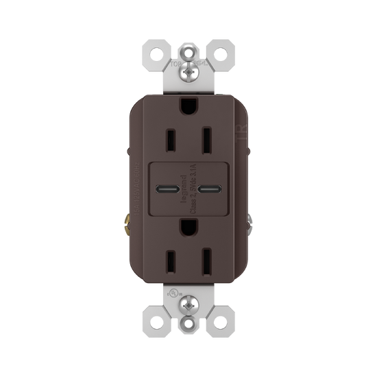 radiant® 3.1A USB Outlet, Type C, 15A, Tamper-Resistant, Dark Bronze