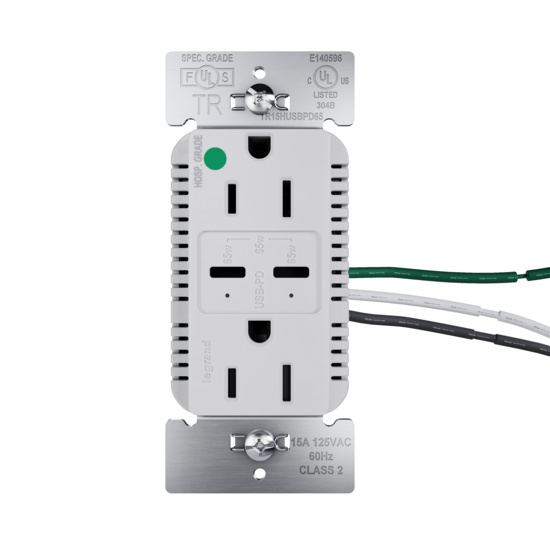 Elevate the power and convenience in your healthcare spaces with Legrand's 65W USB Outlet, equipped with dual Type-C ports and Power Delivery for high-capacity charging. Designed for safe, efficient charging of essential devices – including smartphones, tablets and small laptops like the 13-inch MacBook Pro and Chromebooks – this outlet provides an industry-leading power solution tailored for the future of healthcare power needs.