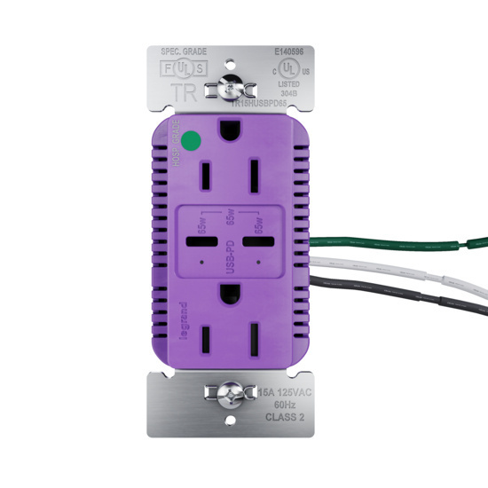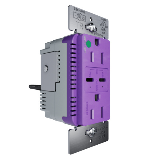 65W Hospital Grade USB Outlet, Type C, 15A, Tamper-Resistant, Purple
