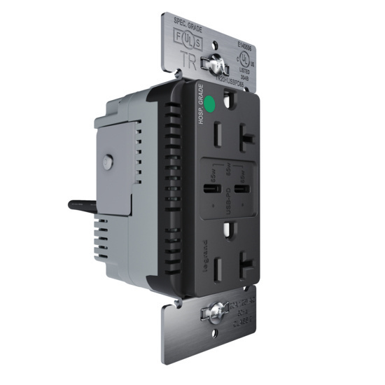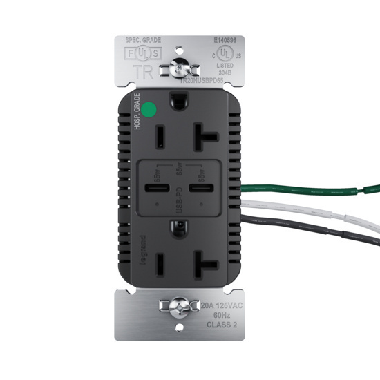 Elevate the power and convenience in your healthcare spaces with Legrand's 65W USB Outlet, equipped with dual Type-C ports and Power Delivery for high-capacity charging. Designed for safe, efficient charging of essential devices – including smartphones, tablets and small laptops like the 13-inch MacBook Pro and Chromebooks – this outlet provides an industry-leading power solution tailored for the future of healthcare power needs.