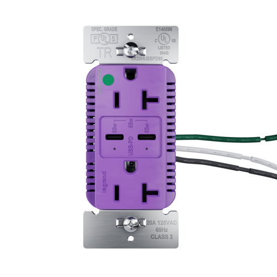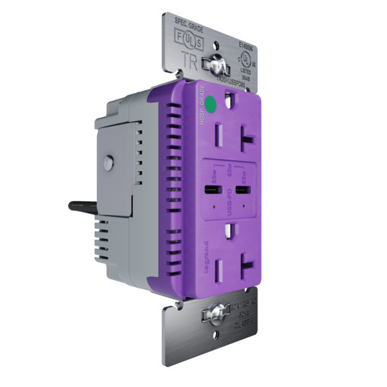 65W Hospital Grade USB Outlet, Type C, 20A, Tamper-Resistant, Purple