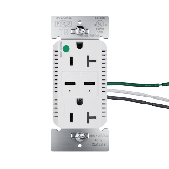 Elevate the power and convenience in your healthcare spaces with Legrand's 65W USB Outlet, equipped with dual Type-C ports and Power Delivery for high-capacity charging. Designed for safe, efficient charging of essential devices – including smartphones, tablets and small laptops like the 13-inch MacBook Pro and Chromebooks – this outlet provides an industry-leading power solution tailored for the future of healthcare power needs.