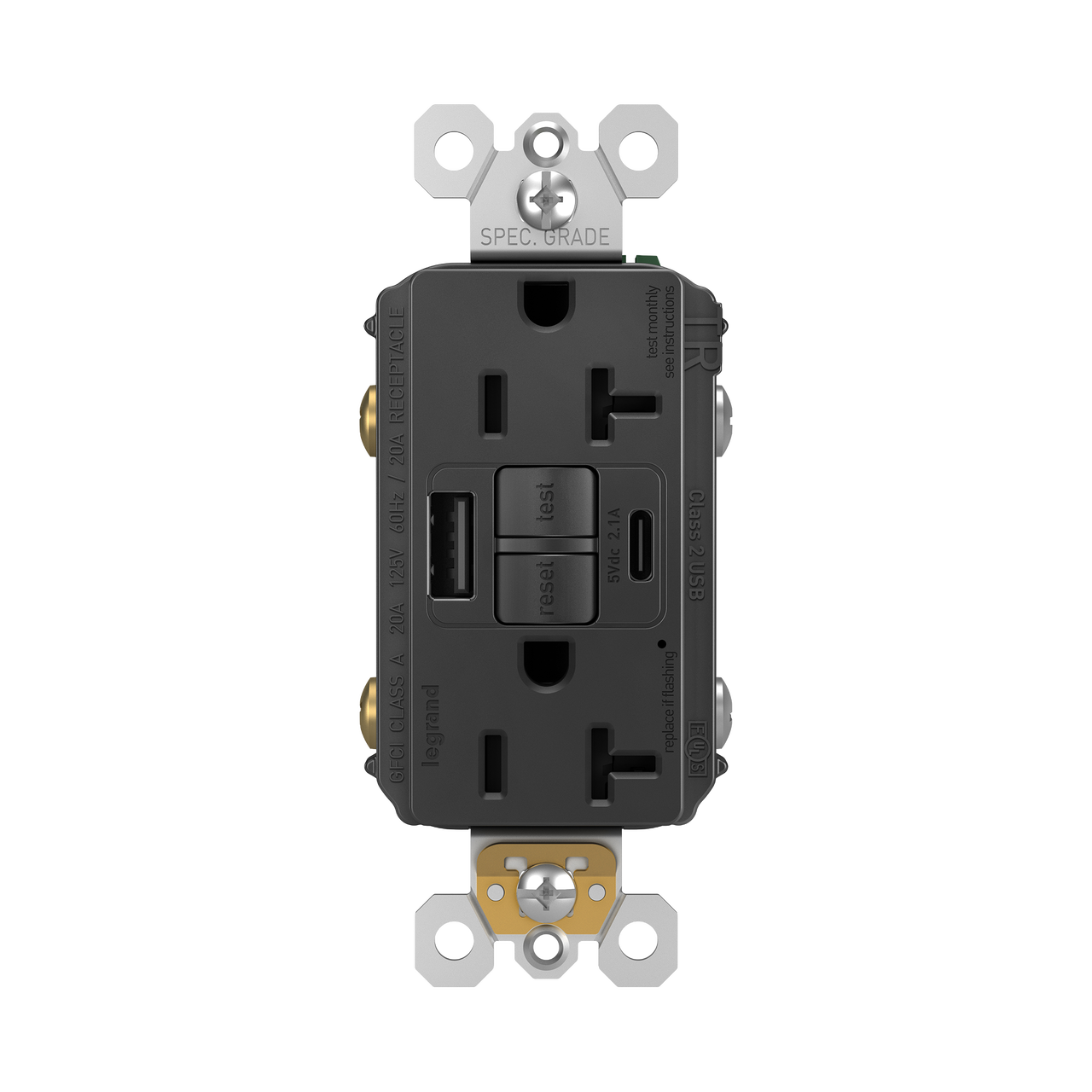 radiant® GFCI USB Outlet with SafeLock® Protection, Type A/C, 20A, Tamper-Resistant, Black