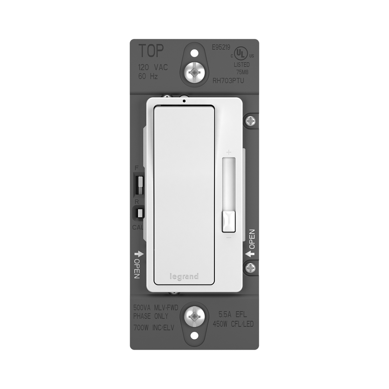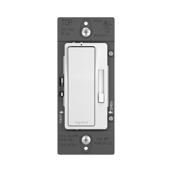 Upgrade your space with superior dimming control and exceptional style. The radiant® Tru-Universal Dimmer works with virtually any 120V dimmable bulb or fixture, adjusting to the precise light level you want, without the flicker. Unsure what dimmer your bulb needs? Avoid uncertainty with Tru-Universal Dimming. Part of the radiant® Collection, it also features clean lines and smooth control for a sophisticated touch. Made exclusively for use with screwless Wall Plates from the radiant® Collection, sold separately.