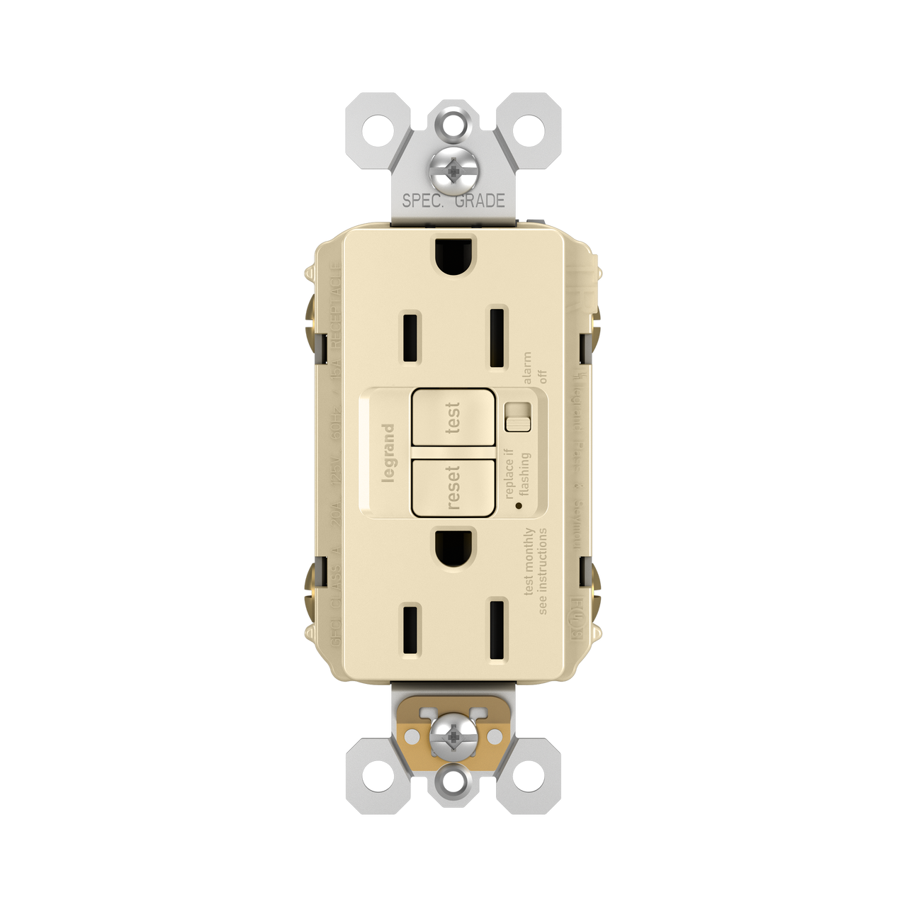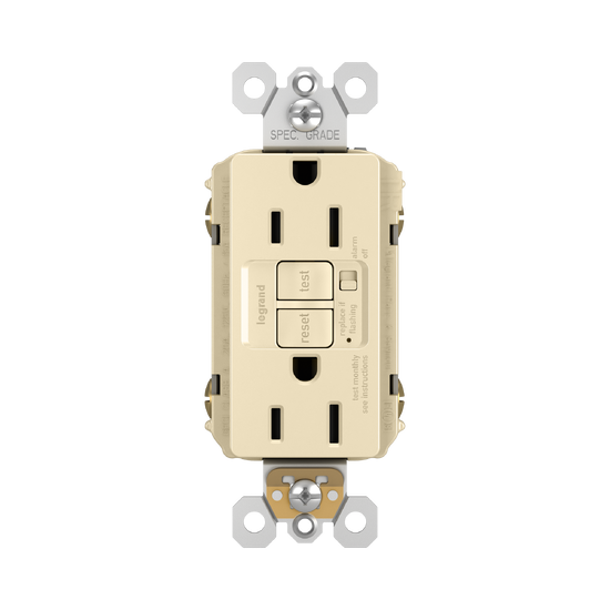 radiant® Tamper-Resistant 15A Duplex Self-Test GFCI Receptacles with Audible Alarm and SafeLock® Protection, Ivory