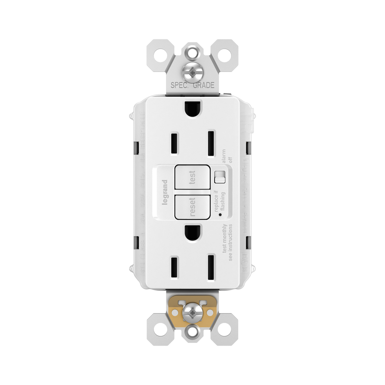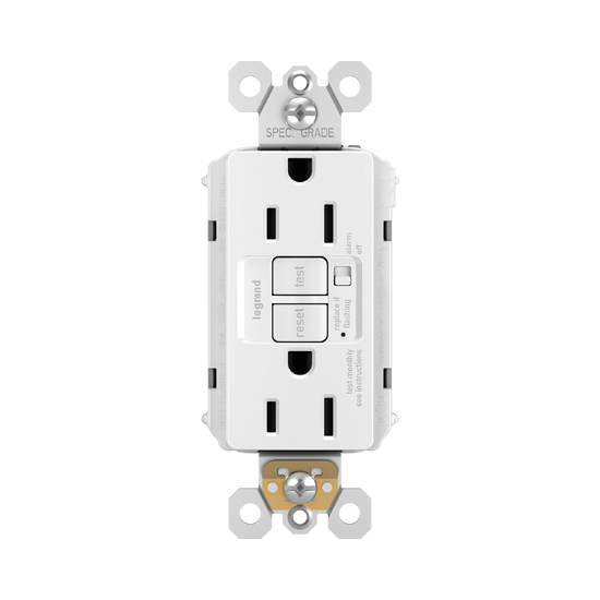 radiant® Tamper-Resistant 15A Duplex Self-Test GFCI Receptacles with Audible Alarm and SafeLock® Protection, White is rated