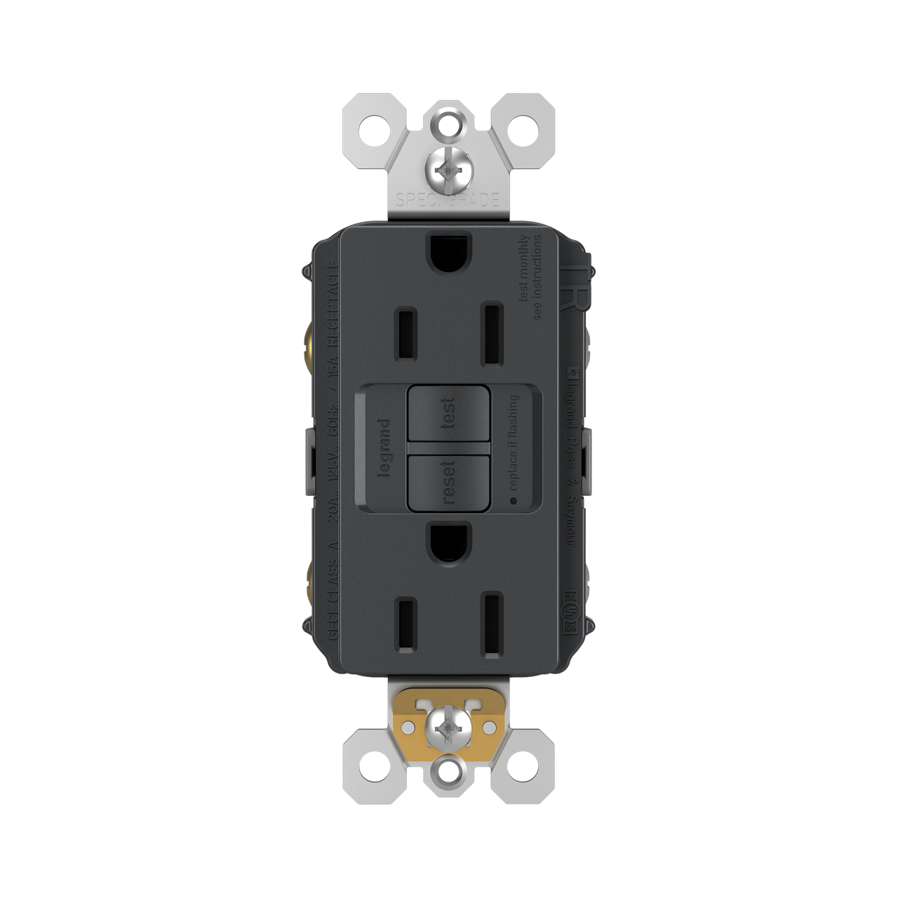 radiant® Tamper-Resistant 15A Duplex Self-Test GFCI Receptacles with SafeLock® Protection, Graphite