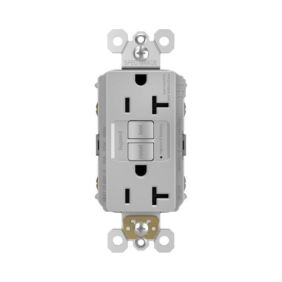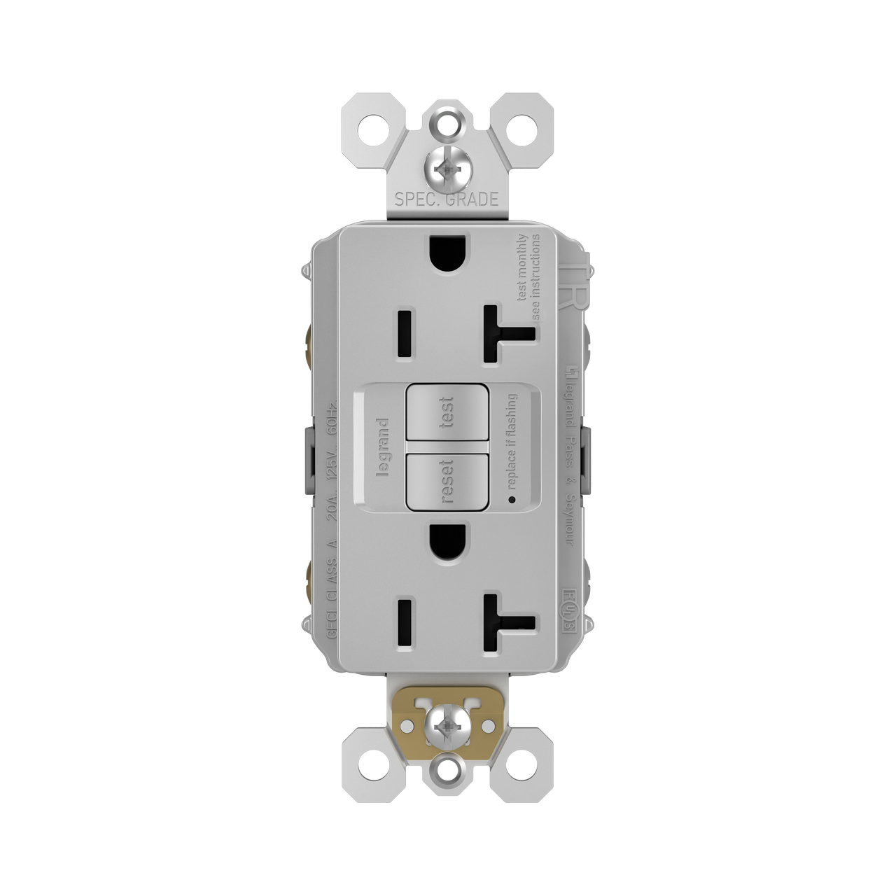 radiant® Tamper-Resistant 20A Duplex Self-Test GFCI Receptacle with SafeLock® Protection, Gray