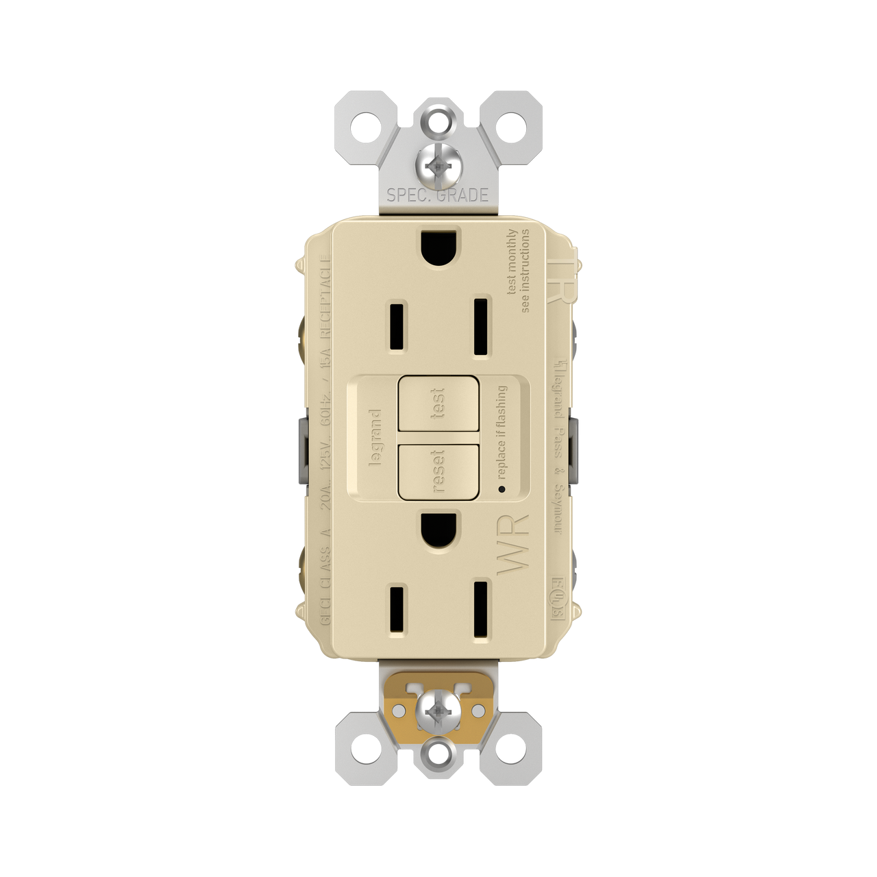GFCI receptacles from the radiant® Collection self-test automatically every three seconds to ensure reliable protection from shock due to ground fault occurrences. Meeting National Electrical Code requirements for ground fault protection, GFCI receptacles make it easier to recognize and fix trips right where they happen – no more confusion at the breaker box. Also including tamper and weather resistance, this model was designed for use on decks, patios, pool areas, and other outdoor spaces. Maximize safety, in style, with GFCI protection featuring the sleek, clean lines of radiant. GFCI protection is required by code in bathrooms, kitchens, garages, basements, outdoor areas, and for any other outlets found within six feet of a sink or water source. GFCI outlets should always be used when replacing existing GFCI outlets during renovation. Made exclusively for use with screwless Wall Plates from the radiant® Collection, sold separately. Spec-Grade devices are engineered to meet federal specifications for use in commercial installations.