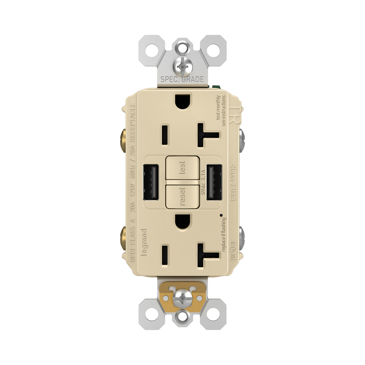 radiant® GFCI USB Outlet with SafeLock® Protection, Type A, 20A, Tamper-Resistant, Ivory