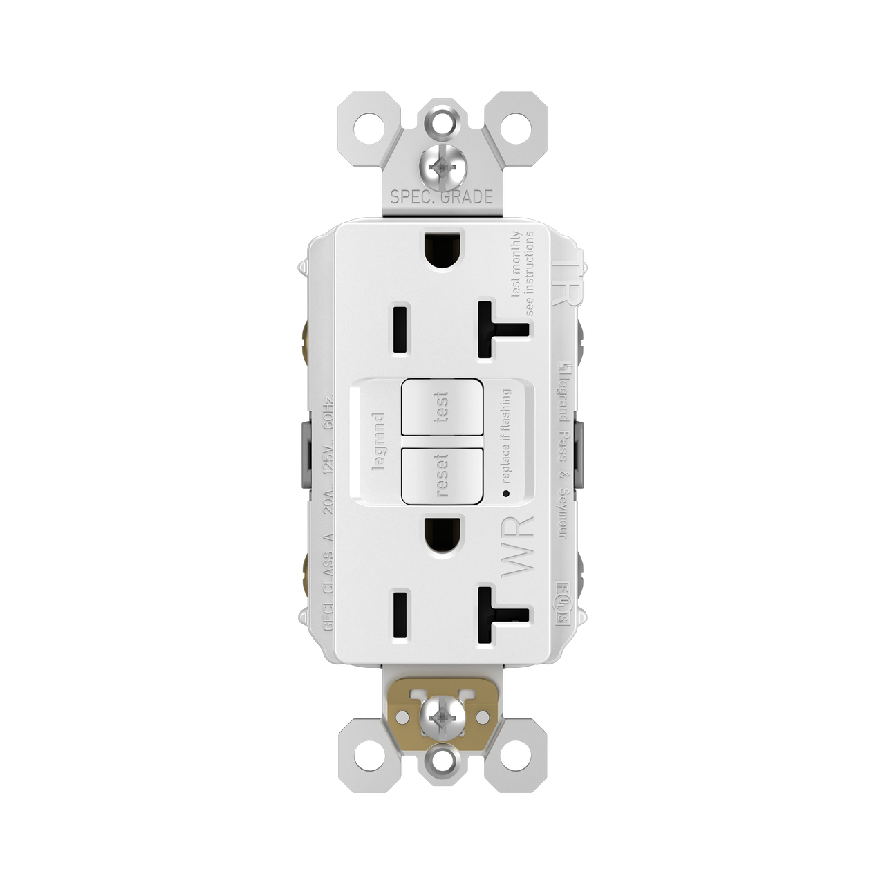 GFCI receptacles from the radiant® Collection self-test automatically every three seconds to ensure reliable protection from shock due to ground fault occurrences. Meeting National Electrical Code requirements for ground fault protection, GFCI receptacles make it easier to recognize and fix trips right where they happen – no more confusion at the breaker box. Also including tamper and weather* resistance, this model was designed for use in outdoor spaces. Maximize safety, in style, with GFCI protection featuring the sleek, clean lines of radiant. 20A outlets are ideal for use with larger appliances and in commercial settings, as well as to meet regional requirements (Chicago, Canada).