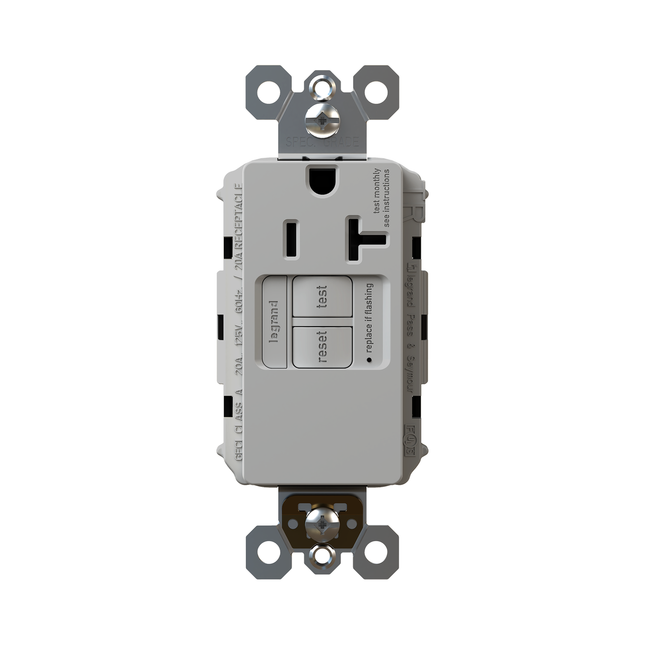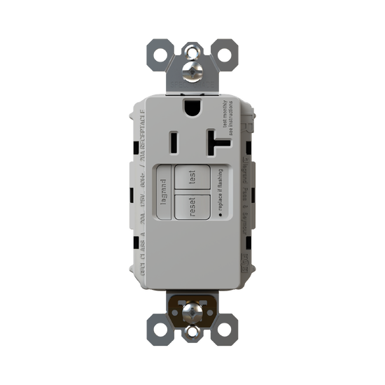 radiant® Tamper-Resistant 20A Simplex Self-Test GFCI Receptacles with SafeLock® Protection, Gray