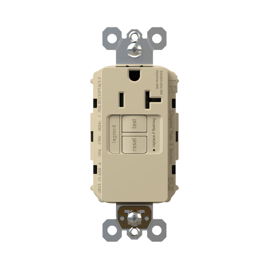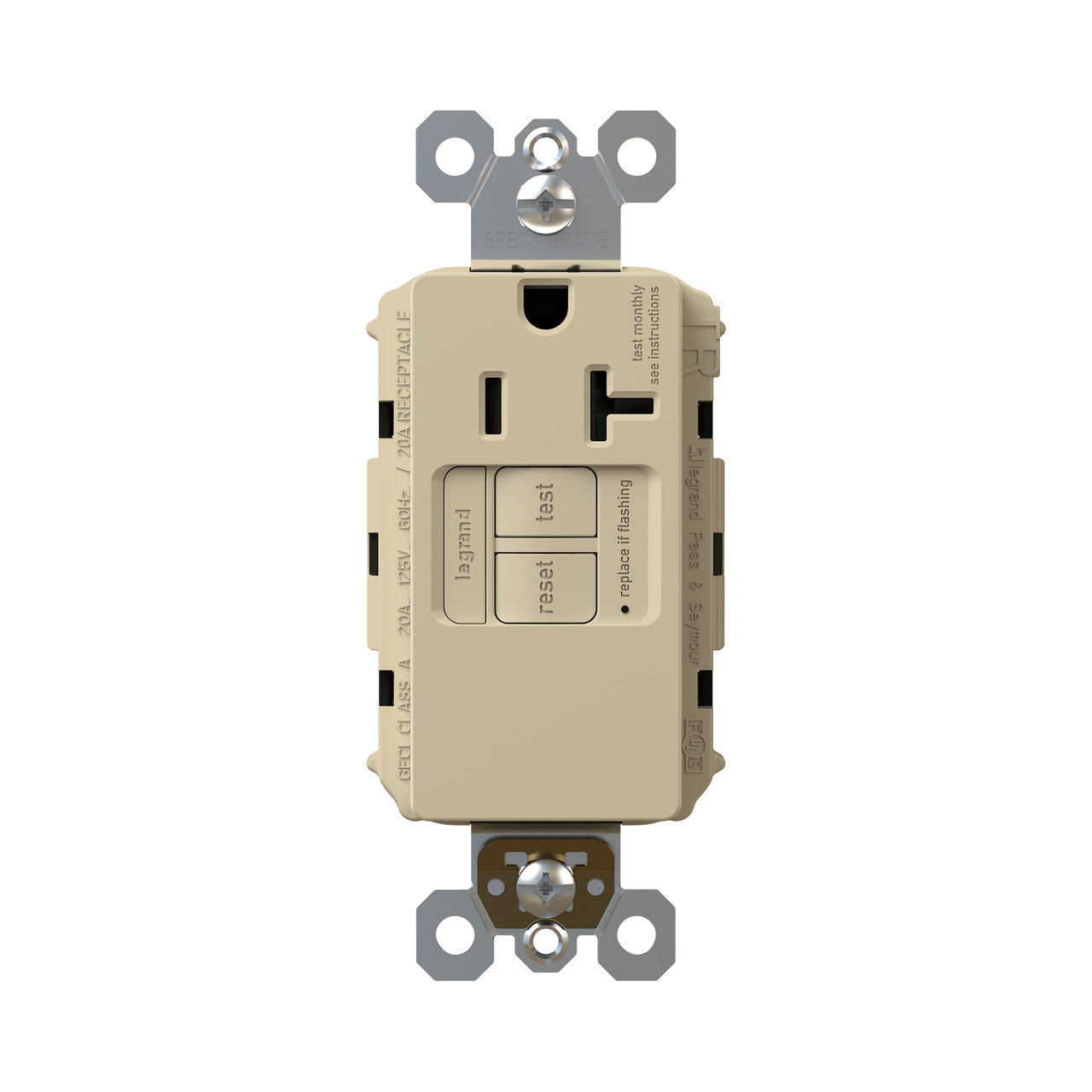 radiant® Tamper-Resistant 20A Simplex Self-Test GFCI Receptacles with SafeLock® Protection, Ivory