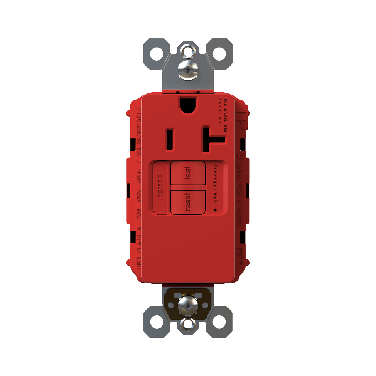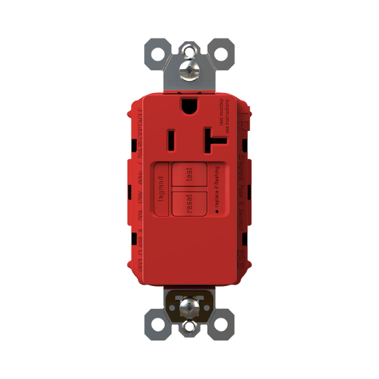radiant® Tamper-Resistant 20A Simplex Self-Test GFCI Receptacles with SafeLock® Protection, Red