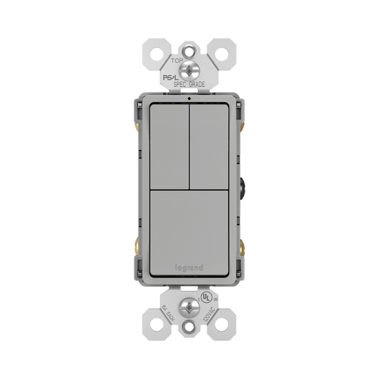 More control, less space. This combination switch provides control of multiple lights or devices from a single location, while featuring an oversized primary switch for easy use. Designed to emulate the sleek lines of the collection's paddle switches, it delivers flexible, space-saving control with the sophisticated look of radiant. Made exclusively for use with screwless Wall Plates from the radiant Registered Collection, sold separately.