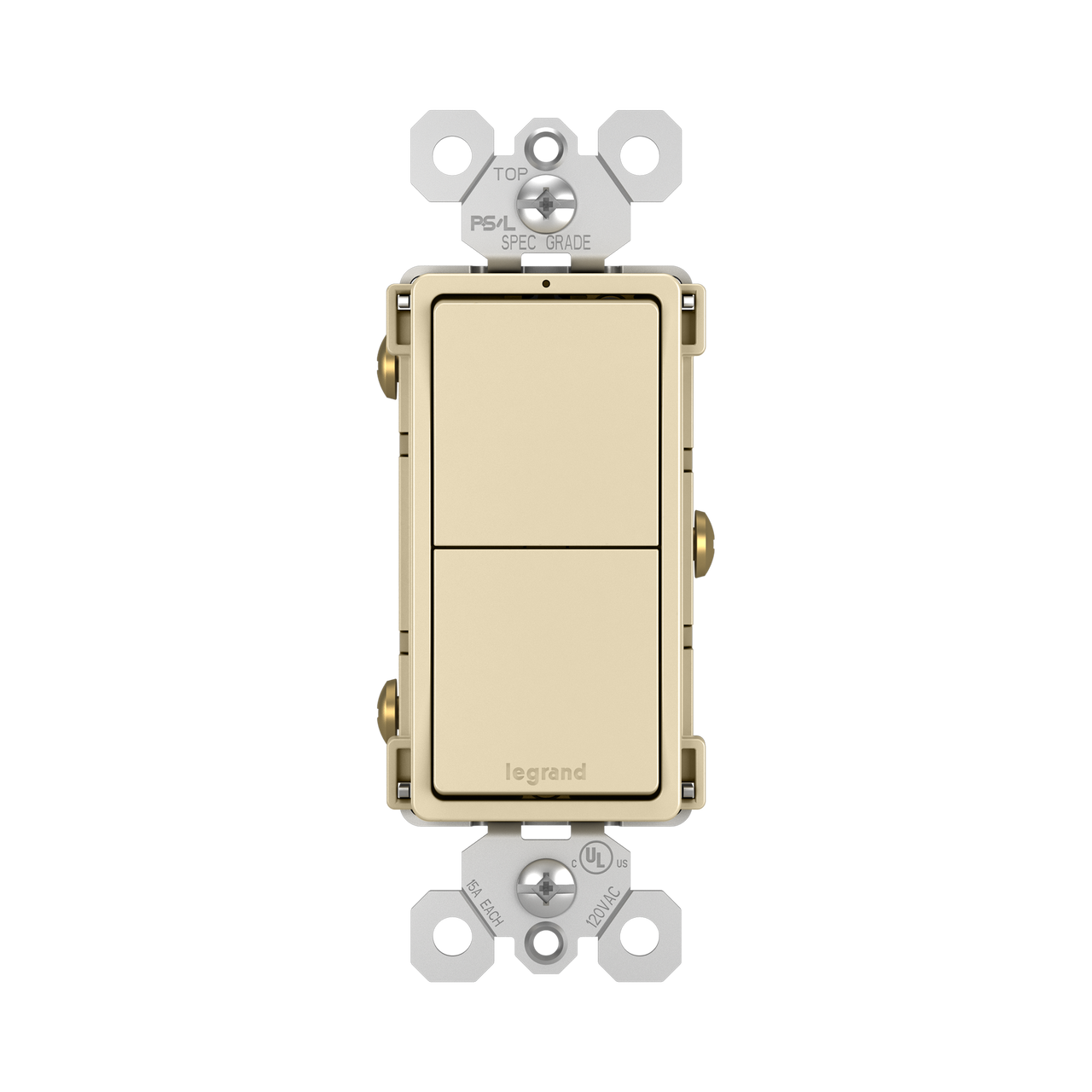 Control two separate lights or devices from a single location with this combination switch. Designed to emulate the sleek lines of the collection's paddle switches, it delivers flexible, space-saving control with the sophisticated look of radiant.