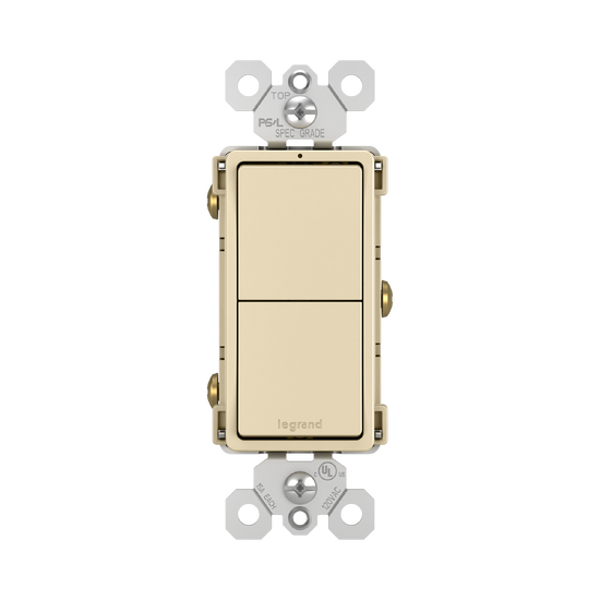 Legrand has reinvented a dual switch design for ecstatics by placing the vertical switching buttons above and below, but we end up constantly turning the bottom light on when trying to turn off the top switch. Will be replacing this switch with the better design dual s/w, horizontal switching above and below.