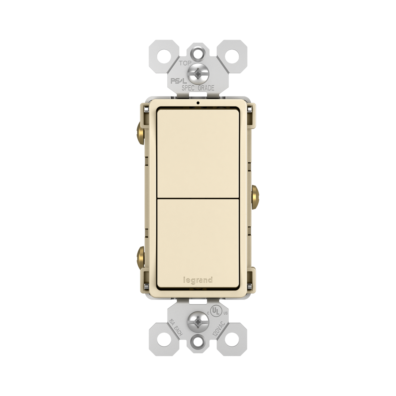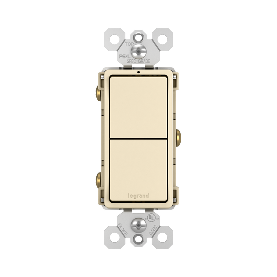 Legrand has reinvented a dual switch design for ecstatics by placing the vertical switching buttons above and below, but we end up constantly turning the bottom light on when trying to turn off the top switch. Will be replacing this switch with the better design dual s/w, horizontal switching above and below.